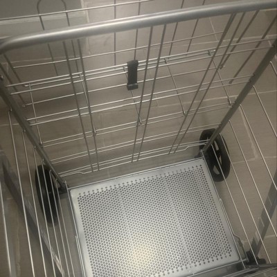 Really nice basket fits a lot and smaller extra space basket is good for holding small things. The front wheels aren't very sturdy and don't last long and when folded don't hold up the basket in place for storage unless slightly opened and make nosie when going over certain surfaces and the cracks in sidewalks. I really like my basket and hope I can find replacement wheels that don't make as much nosie.