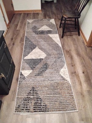 [This review was collected as part of a promotion.] Looks great in the front entryway. Nice colors and pattern. I'm very happy with my Kira abstract rug.