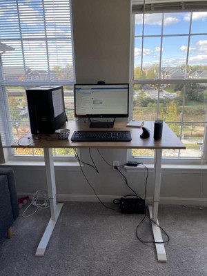 After working from home for 4 weeks using a small desk, my neck and should really pay the price! I decided to get the stand up desk similar to the one I have in the office. So glad I got it! What a difference! I am able to alternate between standing and sitting all day. The desk was simple to put together. (Watch their installation video!) It is very study and spacious. Now I'm able to place extra monitors on my new desk. Neck and shoulder pain are gone!
