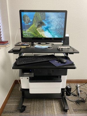Stand Up Desk Store Mobile Rolling Adjustable Height Standing Workstation with Printer Shelf, Slideout Keyboard Tray (Black Frame/Black Top, 30" Wide)