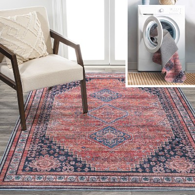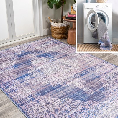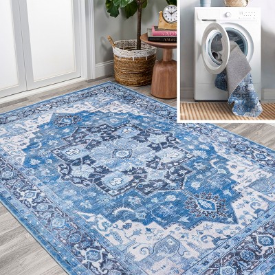 JONATHAN Y Alanya Ornate Medallion Machine-Washable Navy/Cream 4 ft. x 6 ft. Area Rug, Soft, Velvety Texture, Lightweight