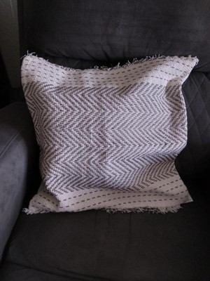 [This review was collected as part of a promotion.] This pillow cover is really well made and the design is a great mix for different styles. Goes perfectly with our gray comforter and linen headboard. The size is good for putting behind your back when sitting on the bed and looks good on a queen size bed.