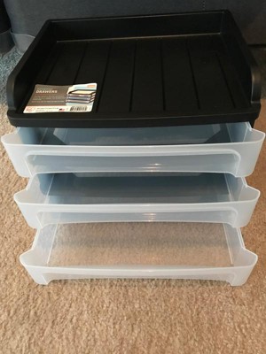 [This review was collected as part of a promotion.] The 3 drawer desktop system is great. The 3 clear drawers show what is in them at a glance and the top of the system is wonderful for stacking taller items. I don't have a lot of space and this system maximizes the space I have. All of my computer stuff is corralled in one place.