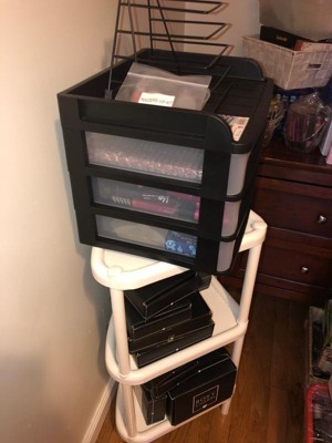 IRIS USA Medium 3-Drawer Desktop Organizer with Open Tray Top, 1 Pack, Plastic Drawer Storage Container for Stationery Art Craft Supplies, Black