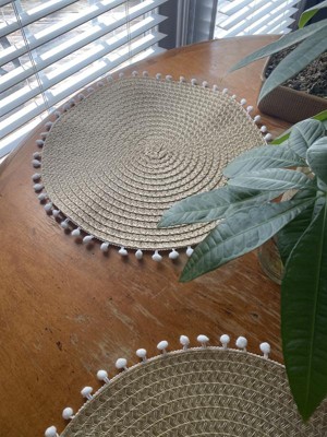 [This review was collected as part of a promotion.] I love these placements. They are absolutely adorable! They are made of a lightweight straw material and trimmed out in dainty little pompoms. They look perfect on my new table with my boho-style decor