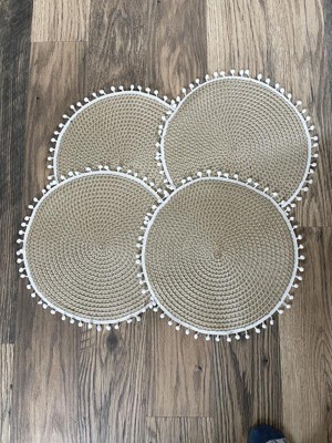 [This review was collected as part of a promotion.] These are really cute with the white poms around the perimeter. The color is excellent and goes with so many styles. The mat itself is wipeable which is nice. I like that they are round and look cute with a charger and plate.
