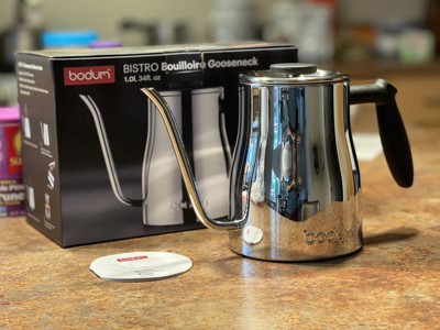 Bodum Bistro 34oz Stovetop Gooseneck Kettle - Stainless Steel: Best Tea & Pour Over Kettle, Ergonomic Handle, Hand Wash