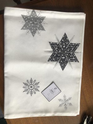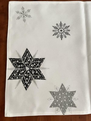 Saro Lifestyle Embroidered Snowflakes Runner, White, 16" x 70"
