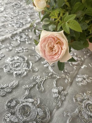 Saro Lifestyle Floral Design Embroidered Tablecloth, Silver, 50" x 70"