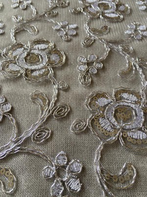 [This review was collected as part of a promotion.] The color silver is beautiful and enhances the embroidered touch because of the sparkle. I really like the look of this table cloth. Perfect table length size to not touch the floor so the table cloth won't get dirty too quickly.