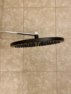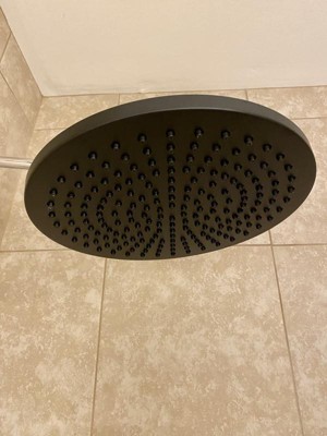 [This review was collected as part of a promotion.] The Delta Rain Shower Head is a heavy duty quality product. We found it easy to install with a shower arm that allows you to get the angle and location you want. If you have a low ceiling this type of shower head won't work this way with the arm. Installation took about 30 minutes from beginning to end. All hardware was included besides the arm and flange. The water comes out well and you can tilt it to your liking. I like that the shower head is easy to keep clean and won't clog up. The matt black is sharp looking and always looks clean.
