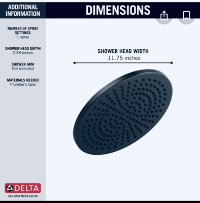 Hi Reesetisha, Thank you for taking the time to leave your review. I am glad that the Delta Faucet model 52158-BL25 Single-Setting Metal Raincan Shower Head In Matte Black meets your expectations! As the manufacturer, we are committed to supplying consumers with a quality product that delivers the expected performance. Thank you for your feedback. We appreciate your business and look forward to continuing to serve you! Best Regards, Bryan Digital Communications Specialist