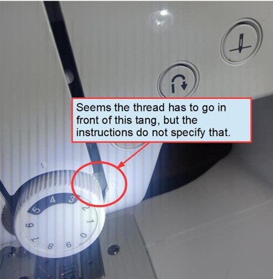The top thread continuously gets tangled under the thread spool around the thread holder. This has been happening since day one of brand new machine. I’ve tried everything to rectify it and ended up purchasing a different sewing machine. I love other Brother sewing machines but don’t waste your money on this model! CP100X