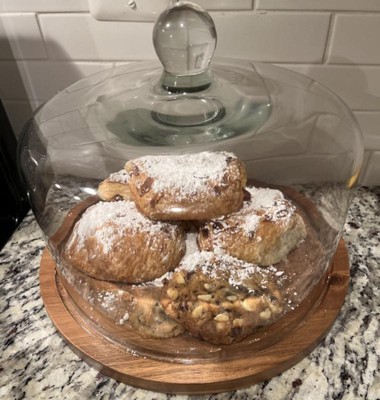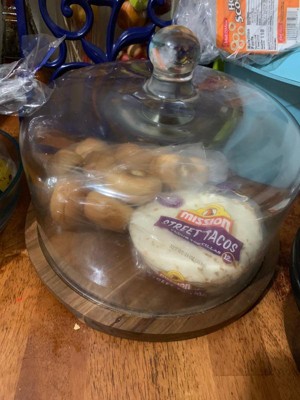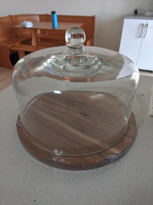 Libbey Acaciawood Flat Round Wood Server Cake Stand with Glass Dome