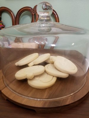 [This review was collected as part of a promotion.] The Libbey Acaciawood Cake Stand is a great addition to my kitchen. The smooth, flat, round, wooden base has a beautiful wood grain and deep groove which securely holds the lid in place. The glass domed lid is sturdy with a good weight, and smoothly finished edges which protect the items beneath while giving a clear view of them. The ball shaped handle on top is easy to grip and adds a decorative touch. I like to keep this on my countertop year round and use it for more than just cakes. I also use it for pies, cookies, cupcakes, muffins, waffles, rolls, donuts, fruit and more. I love providing special treats for my family, and they deserve a special display like this. It also makes a perfect presentation for cakes birthdays and other parties.