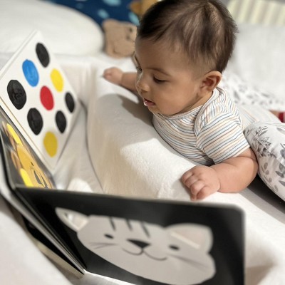 I love that I can prop this book up by itself and my baby giggles and is focused on the pictures. I also love the sensory additions! Such a cute book for tummy time!