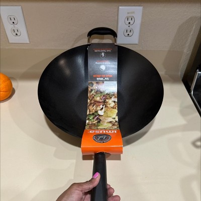 IMUSA 14" Coated Wok with Bakelite Handle: Preseasoned, Stay-Cool Handles, Nonstick Carbon Steel, Includes Spatula