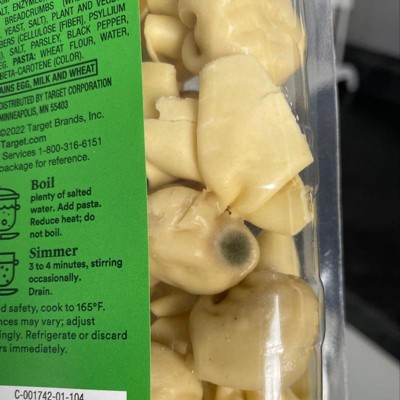 i wouldn’t normally buy fresh pasta but these were on sale so i thought i would try them and i’m impressed as i almost always am about Good and Gather items. i made a lemon parmesan sauce for them with some chickpeas thrown in for extra protein and it worked really well. i wouldn’t eat them with regular marinara or cream sauce, they’re too delicate. but are great with a light pan sauce or in brodo would be excellent. just don’t cook them too long (only 3-4 minutes!!) or they will definitely get mushy which because they are so delicate. mine could have stood for about a minute less cooking