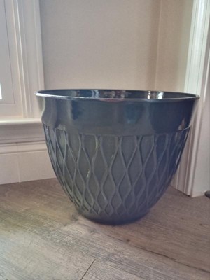 [This review was collected as part of a promotion.] I am loving this set of planters! They are so beautiful and look like high quality without the high quality price tag. They look amazing in my foyer! I love the textured look on the outside. I also love the alpine pattern on the bottom part of the planters. They are also pretty large in size which is just what I needed! They also have drain holes if you would want to use them for real plants but I use artificial plants in mine.