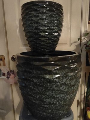 Set of 2 Polyresin Indoor/Outdoor Embossed Wave Planters Speckled Gray - Alpine Corporation: No Assembly, Freestanding Design