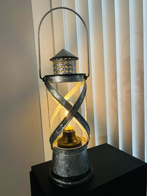Indoor/Outdoor Metal Vintage Lantern with LED Lights Silver - Alpine Corporation: Hurricane-Style, No Assembly Required - 2 of 3Indoor/Outdoor Metal Vintage Lantern with LED Lights Silver - Alpine Corporation: Hurricane-Style, No Assembly Required - 3 of 3