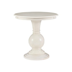 This circular accent table features a stepped base and turned pedestal that come together to create a timeless and sophisticated piece. Measuring at 26.25” L X 26.25” D X 26.5” H, it is ideal for placement next to a couch or set of chairs in your living room, as an extra surface in your bathroom or as additional table space wherever you like to entertain. The neutral cream finish also lends itself to nearly any decor setting and color palate, allowing you to keep your options open once you bring it home.