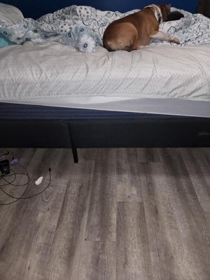 [This review was collected as part of a promotion.] My husband got the task of putting this together as me and instructions don't mix. It was fairly easy to put together per him. The boards are thin so we were concerned since we both are on the fluffy side that it would break right away. We have had it for almost two weeks now and not a creak has been heard! Fairly impressed with the quality of this bed frame. We at first had our box spring on it and quickly realized that myself and my two dogs were having difficulty getting up into bed (I'm 5'3) and this was up to my chest lol. So we took the box spring off and it's the perfect height! Definitely look into this brand!