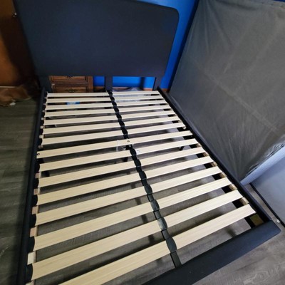 [This review was collected as part of a promotion.] I have had a futon in my spare room for years and wanted to change up the look and comfort for my guests. I went with the grey full size fabric frame and have been happy with it, the slotted base seems to be good enough for the hybrid mattress I have on it.