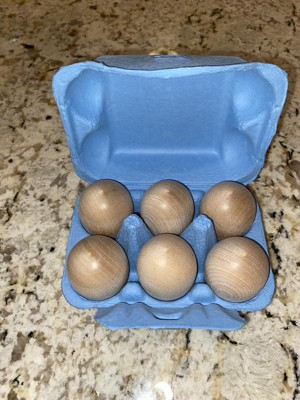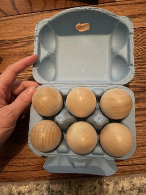 [This review was collected as part of a promotion.] My daughter was excited to open her egg carton (just like mommy's), and proceeded to crack her egg in her toy kitchen. But she hasn't really used them much since the first day. Pros: Nice wooden replica eggs. Nice size and shape. Cons: not all the finishes were perfectly smooth.