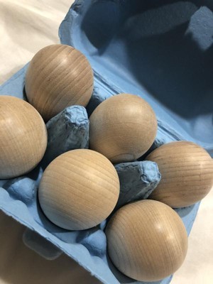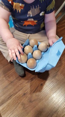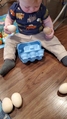 [This review was collected as part of a promotion.] My 3 year old love play-baking, so I got her these to go with her play kitchen. I love the realistic egg container, and they’re nice and smooth and appropriately sized. I also think these would be great painted as Easter decorations.