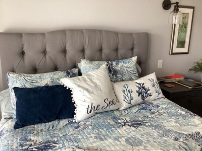 - COORDINATE YOUR ROOM DECOR: Create a wonderful bedroom space with our coordinated reversible quilt. The a myriad of blue colors on a white ground design brings seaside breezy accents into your home and will match a variety of different looks and bedroom decor. You can also freshen your room with other items from the Reef Dream collection.