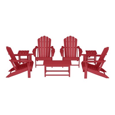 Flash Furniture 2 Pack Charlestown All-Weather Poly Resin Wood Adirondack Chairs with Side Table in Red