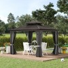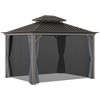 Outsunny Patio Gazebo, Netting & Curtains, 2 Tier Double Vented Steel Roof, Hardtop, Ceiling Hooks, Rust Proof Aluminum