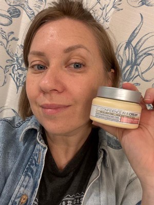 [This review was collected as part of a promotion.] Although I haven’t seen much difference in the find lines I do love how refreshing my face feels after using this product! It’s very smooth and little goes a long way. I usually pop a little on after my nightly shower and even for a little morning pick me up. My skin feels hydrated without too much shine and it’s not sticky at all. All in all love this confidence in a cream oh and the smell is very light almost not even one so that’s a win win in my book!