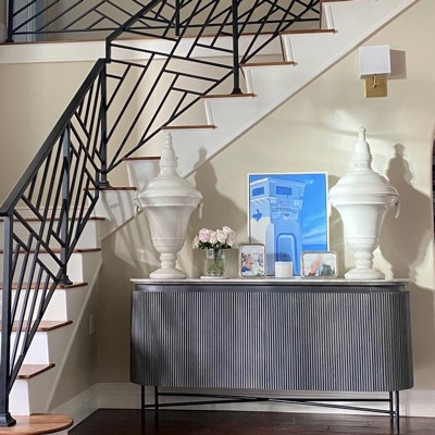 I originally got this since it was recommended as a dupe/similar product for Finley Sideboard from Arthaus but at a fraction of the price. The quality wasn't what I was expecting. I understand that granite would have varying variations, but my stone top had really bad dark spots clusters and rough edge (not polished) - for the price, I would have expected more quality control for the stone top. The paint especially around the bottom lip of the stone seemed like a rush job. There's parts that look missed in the spray painting process causing the wood to look dirty. The wood itself feels rough like it wasn't sanded properly which makes it tricky to clean since paper gets snagged. This is not as noticable in photos - it looks decent in photos but quality is lacking. Lastly, I knew this would ship assembled, but this made it extremely hard to move around in the house. Product spec says the console is 210lbs but final shipping has this at a whooping 290lbs. I would return this if I could but it's so heavy and such a hassle.