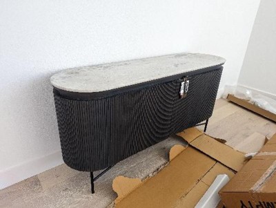 Granite Top and Metal Legs Racetrack Sideboard Cabinet White/Charcoal - StyleCraft: Mango Wood, Fixed Shelf, Luxury