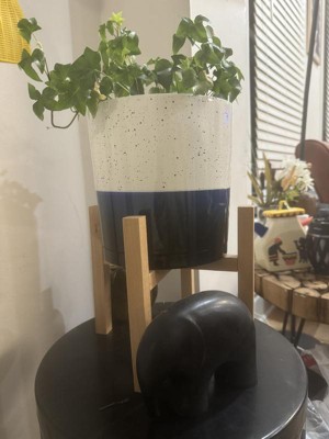 8" Henrietta Planter in White & Blue Two Tone Finish w/ Wood Stand - Southern Patio