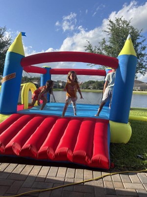 [This review was collected as part of a promotion.] This is one of the best bouncers I ever had. Blowing it up was a breeze. It holds up well and is so spacious. The colors are bright and very summery. We recently used it for a birthday party and the kids had hours of fun on it. I like the wide playing area, stability of the bouncer and the ease of storing it after its use. Definitely a must have.