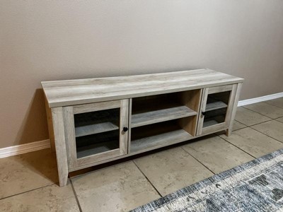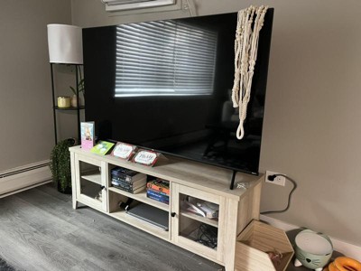 Ample Storage Space: This wooden TV stand is equipped with plenty of storage space, including two open compartments, and two cupboards with doors, so your movies, games, and media devices will find their place. Each shelf can be adjusted to three different positions to suit your needs