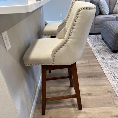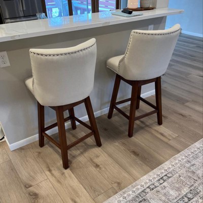 - Robust & Stable Frame: The solid wood legs of the swivel bar stools ensure stability, while the footrest ring allows you to rest your feet for a better posture.