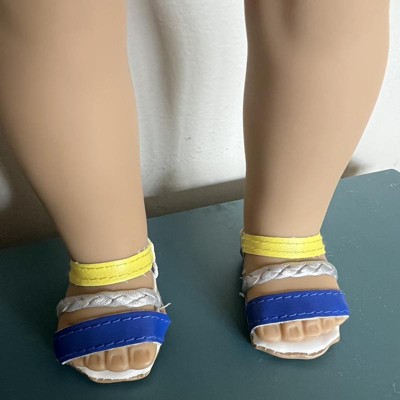 The outfit is cute and seems well made, but the sandals are actually smaller than the feet of my granddaughter's Our Generation doll.
