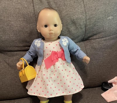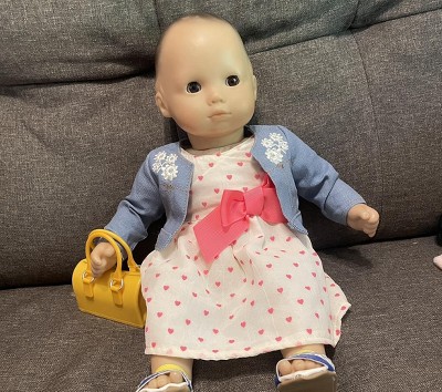 [This review was collected as part of a promotion.] My daughter was very happy to dress up her dolls with this cute outfit! Complete outfit for her dolls! Dress, jacket, purse, and even cute sandals! My daughter was so happy to dress up her doll just like her!