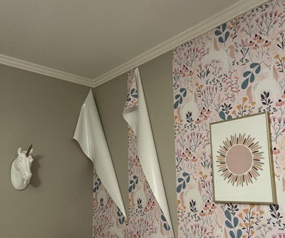 RoomMates Unicorn Paradise Peel and Stick Wallpaper Pink: Removable Kids' & Girls Background, Vinyl, Self-Adhesive, 28 Sq Ft