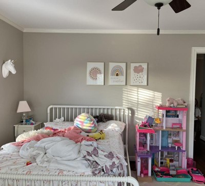 This is so cute, but we’re having problems getting it to stay on, which is super frustrating because it isn’t the fastest process to do. We will see how the next week goes, but we wake up or come home to large pieces unsticking. We have another accent wall in the guest room and that brand peel and stick has never come off.