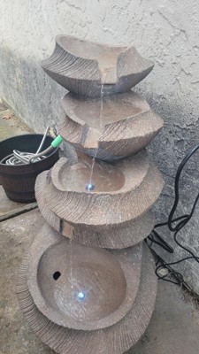 31" Resin Cascading Outdoor Fountain with LED Lights Brown - Alpine Corporation: Waterfall Feature, 5-Tier Design, Electric Powered