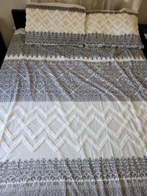 3pc King/California King Mila Cotton Duvet Cover Set with Chenille Tufting Gray - Ink+Ivy