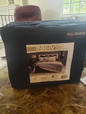 [This review was collected as part of a promotion.] This is a cool looking, well designed set. We love the modern design. The material of the duvet set was a little rough, so be sure that you’re okay with that. Not a big deal for us and a nice bed set.