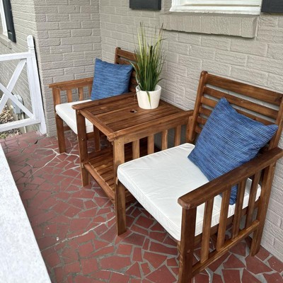 Costway Patio Loveseat Conversation Set Acacia Wood Chair Coffee Table Cushioned Red