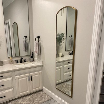 Arched 19"x64" Rectangular Metal Leaning Floor Mirror Brass - Hearth & Hand™ with Magnolia