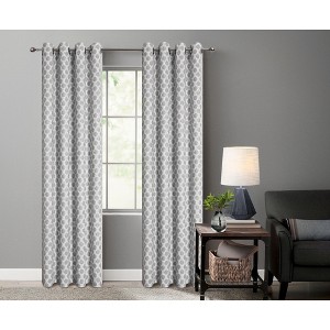 Kate Aurora 2 Piece Contemporary Chic Metallic Abstract Circles Light Filtering Grommet Top Curtains